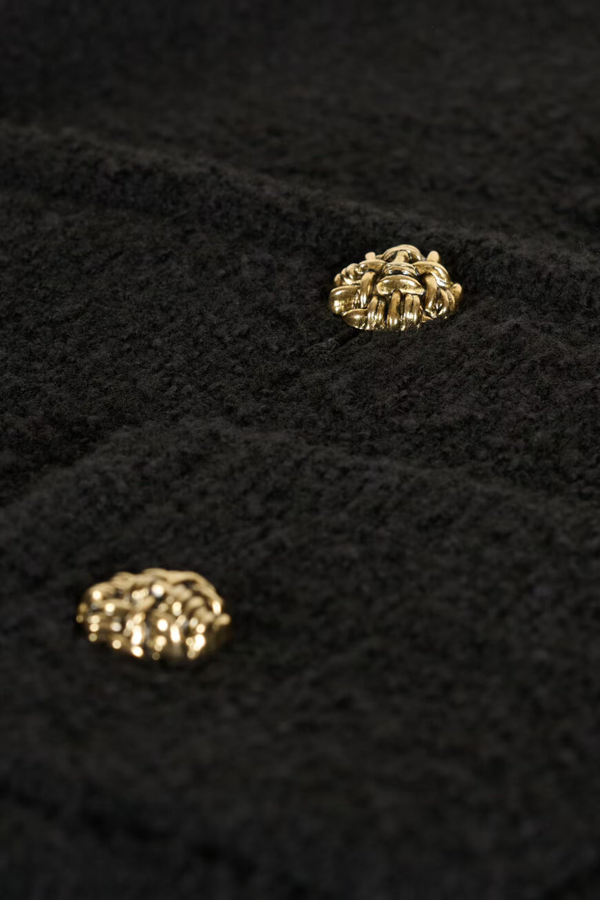 - Gold-tone buttons on both the front and cuffs, adding a luxe, polished finish